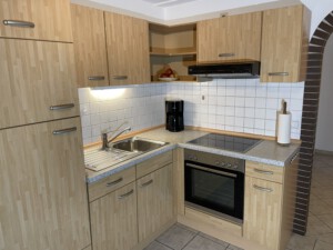 - Küche mit Backofen, Mikrowelle und Geschirrspüler